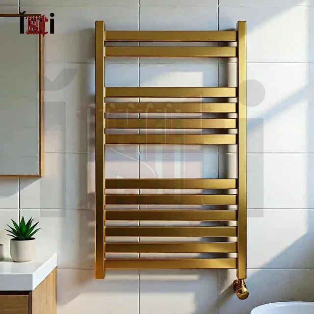 حوله خشک کن 12 پره طلایی مات استیل، ترکیبی ایده‌آل از زیبایی و کارایی! با طراحی مدرن و لوکس، یکی از ضروریات هر حمام شیک است.