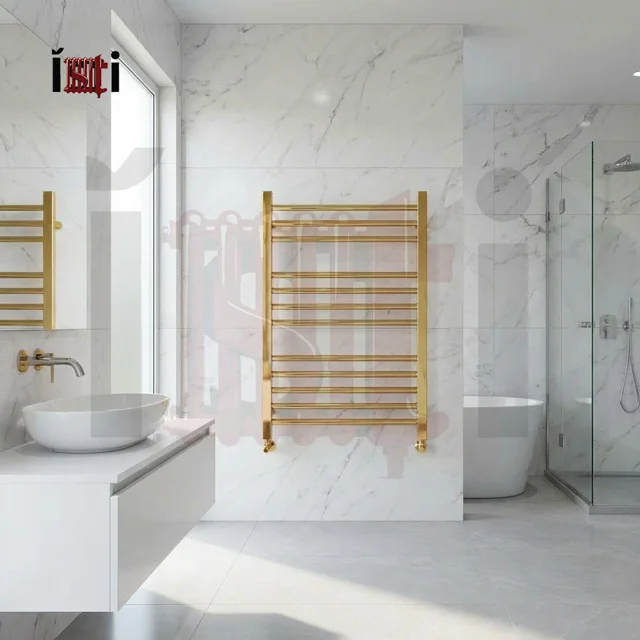 حوله خشک کن 12 لول طلایی براق استیل، ترکیبی ایده‌آل از زیبایی و کارایی! با طراحی مدرن و لوکس، یکی از ضروریات هر حمام شیک است.
